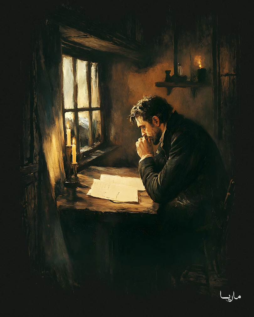 عندما دخلتُ بخجل إلى تلك الغرفة البسيطة في ذلك اليوم، وظننتُ أنني وحدي فيها، بدأتُ أتفحصها بإمعان. فجأة، توقفتُ مذهولًا بسبب صوت غريب يشبه الاختناق، بدا وكأنه قادم من الظلال خلف الخزانة الكبيرة المليئة بالكتب. مدفوعًا بالفضول، تقدمتُ بحذر لاكتشاف مصدر الصوت. هناك، وقفتُ أمام شبحٍ وردي اللون — هو ماري ماريه نفسها — تقف في الزاوية مثل طفلٍ عاق، رأسها مستند إلى الجدار، وبكل هدوء، كانت تذرف دموعًا بطيئة.