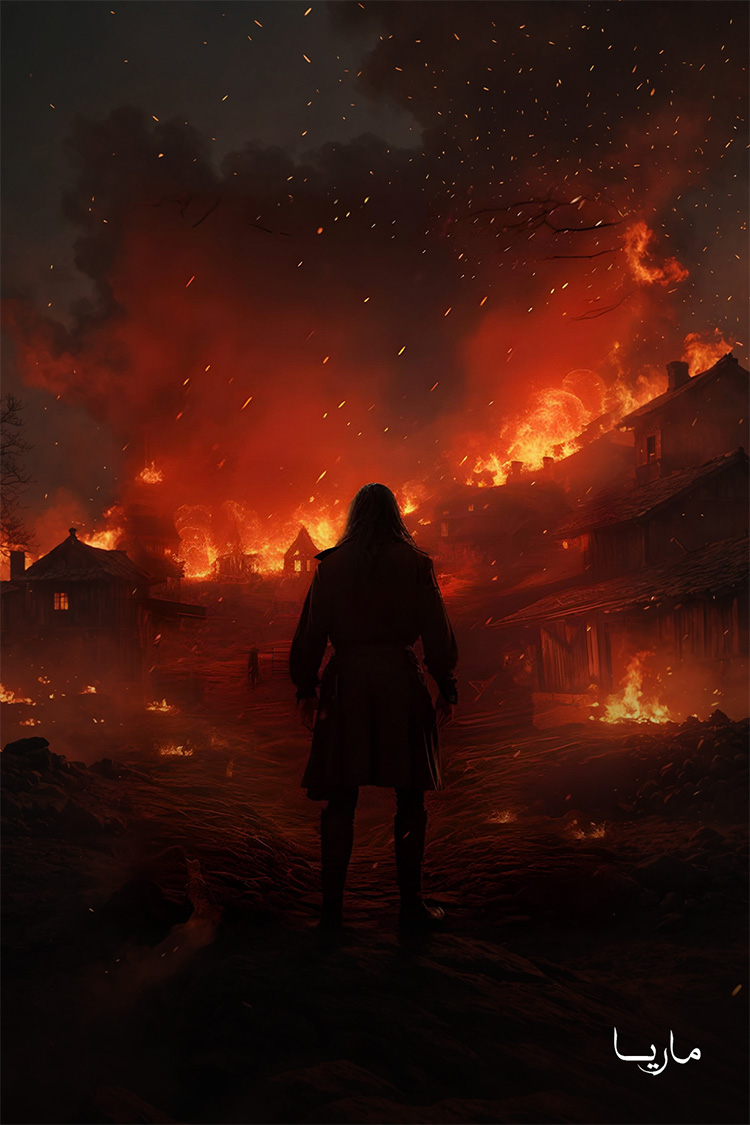 هززت رأسي، لأنني رغم حبي للحياة، كنت أحب ماري أكثر، وشعرت بأننا نصنع نهاية جيدة بعد معركة شجاعة. كانوا يطرقون الباب الآن،"الآن يا ماري، كوني جاهزة"، صرخت وأرفع المسدس. "يا لله استقبلني!" أجابت بصوت خافت. "لن يؤلم كثيرًا، أليس كذلك يا ألان؟" "لن تشعري بأي شيء"، همست؛ وبدأت أضغط الزناد ببطء وثبات، وعرقي البارد يتصبب مني. يا إلهي! نعم، بدأت بالفعل في الضغط عليه، لأنني أردت ألا أخطئ. كان ذلك في هذه اللحظة بالذات، فوق الفوضى المروعة لهدير اللهب، صراخ المتوحشين، والصراخ والنحيب للرجال الجرحى والمقتولين، عندما سمعت أحلى صوت سمعته على الإطلاق – صوت إطلاق النار، العديد من الطلقات، وكانت قريبة جدًا.